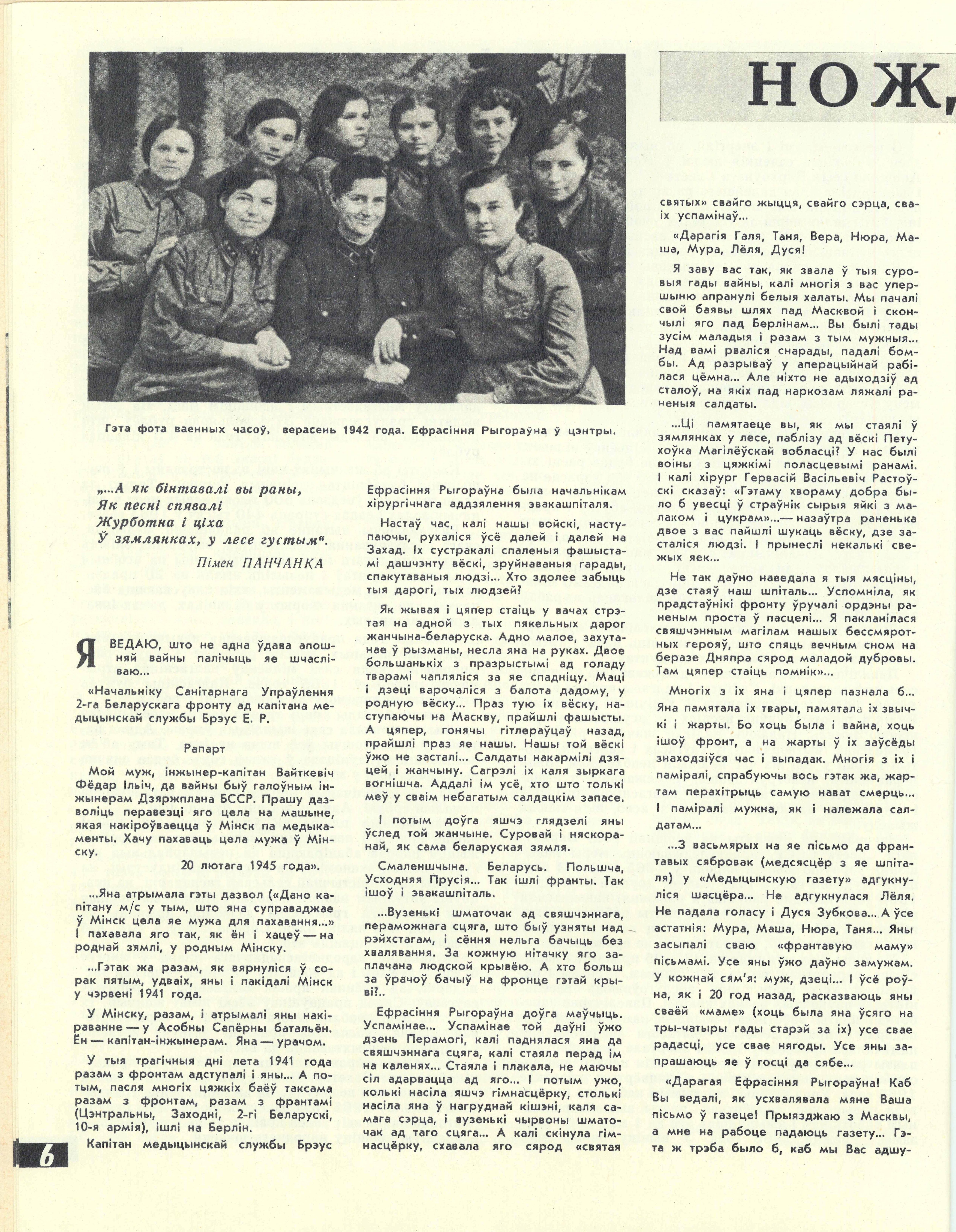 - Васілевіч, А. Нож, трава, слова… / А. Васілевіч // Работніца і сялянка. – 1965. – № 1. – С. 6–7.