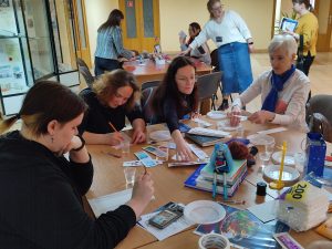Незабываемая атмосфера вдохновения и креатива царила в Арт-пространстве «Творческий остров». Своими руками изготовить блокноты в технике японского переплета и уникальные ажурные открытки, нарисовать стильные закладки и создать оригинальные прически – все это попробовали гости «БиблиоМедики».