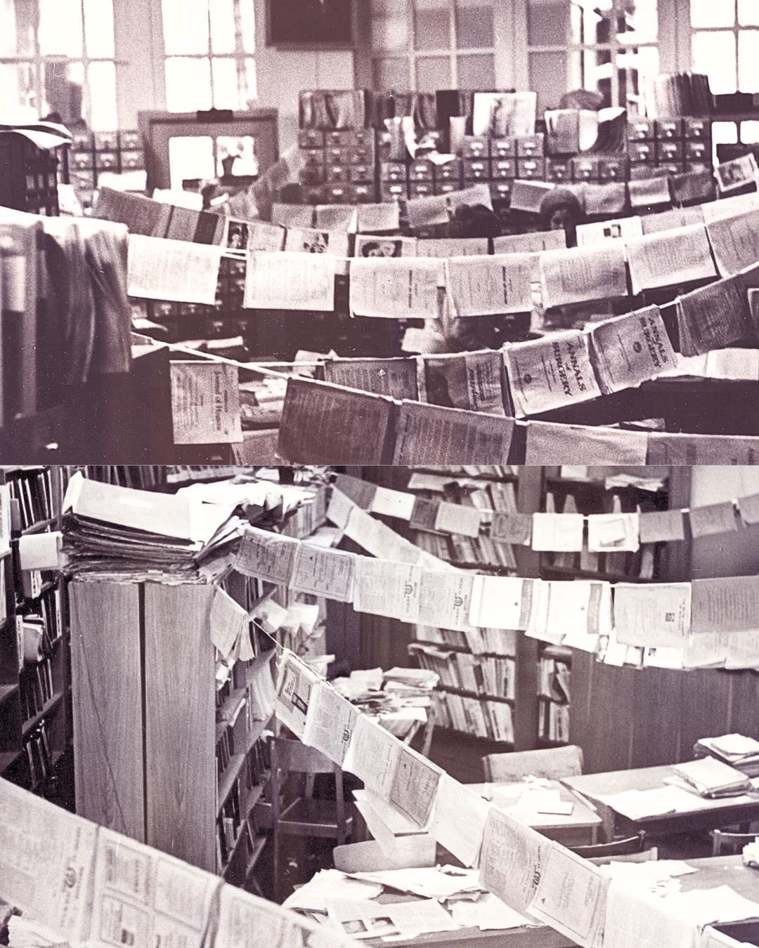 - Фонд достиг 469,5 тысяч экземпляров, а число посещений превысило 54 тысячи. Начался выпуск ежемесячных отраслевых листков новой литературы, которые рассылались по медицинским учреждениям. Для удобства специалистов в каталогах дежурил консультант, а актив читателей готовил обзоры новых поступлений. Но год запомнился и трагическим событием. Сточные воды затопили часть помещений, пострадало около тысячи изданий, в том числе редкая иностранная литература. В этот непростой год библиотеку возглавила Л. Н. Погребная.