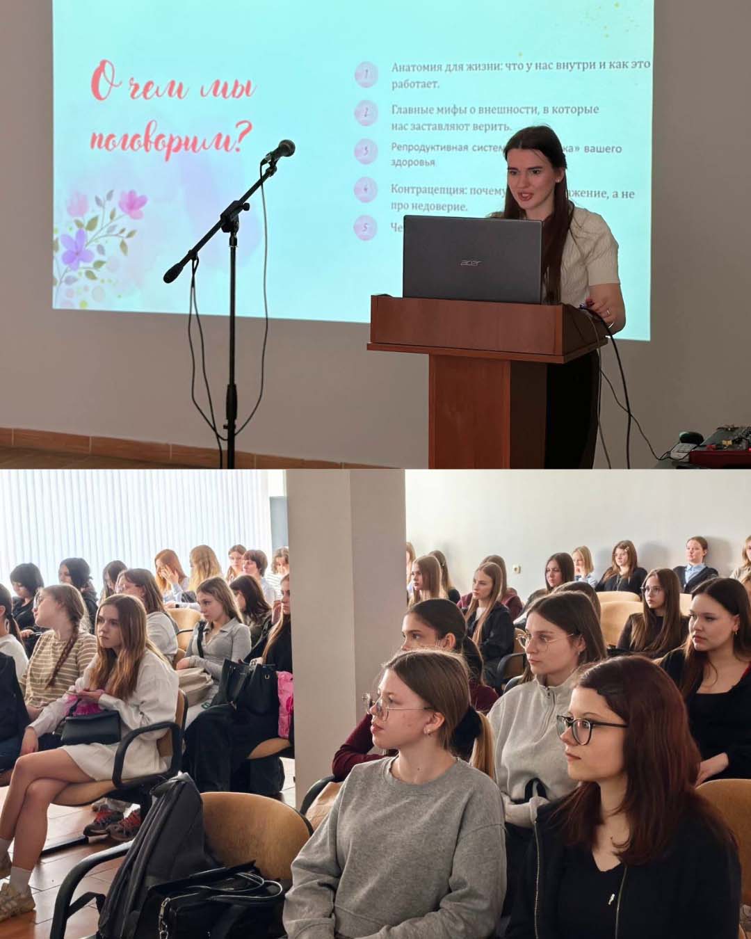 Встречу с юными участницами провела Ульяна Фидельевна Рунец, врач акушер-гинеколог, ассистент кафедры акушерства и гинекологии с курсом повышения квалификации и переподготовки БГМУ.
