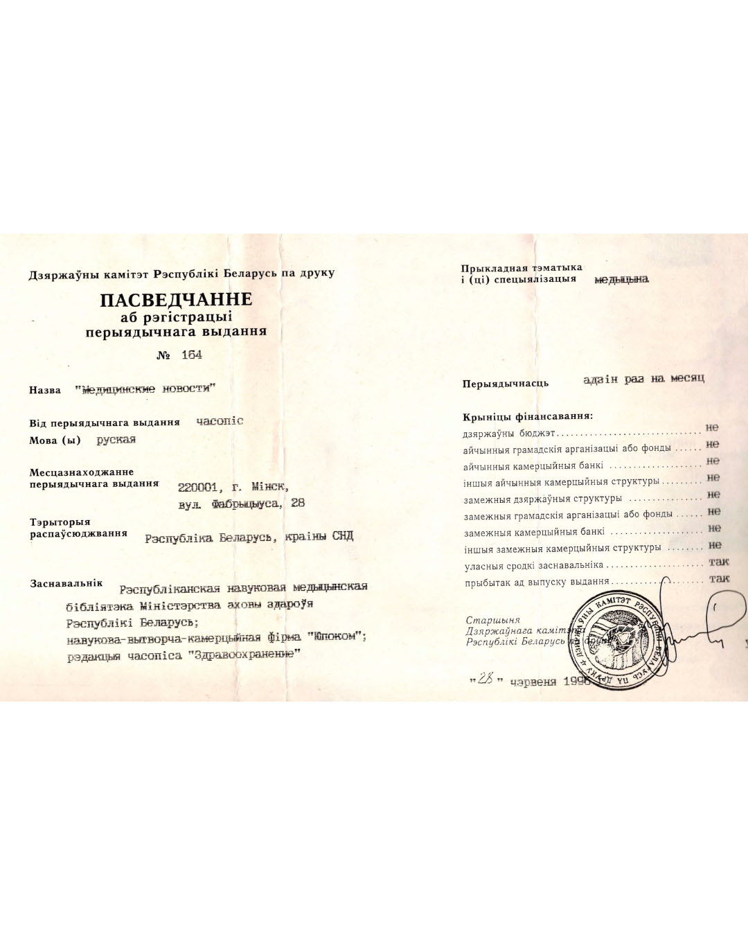 Вторая половина 1990-х – время больших достижений и в части создания информационных ресурсов. В июне 1996 года РНМБ официально оформила свой статус учредителя журнала «Медицинские новости». А еще через год получила свою первую лицензию на полиграфическую деятельность.