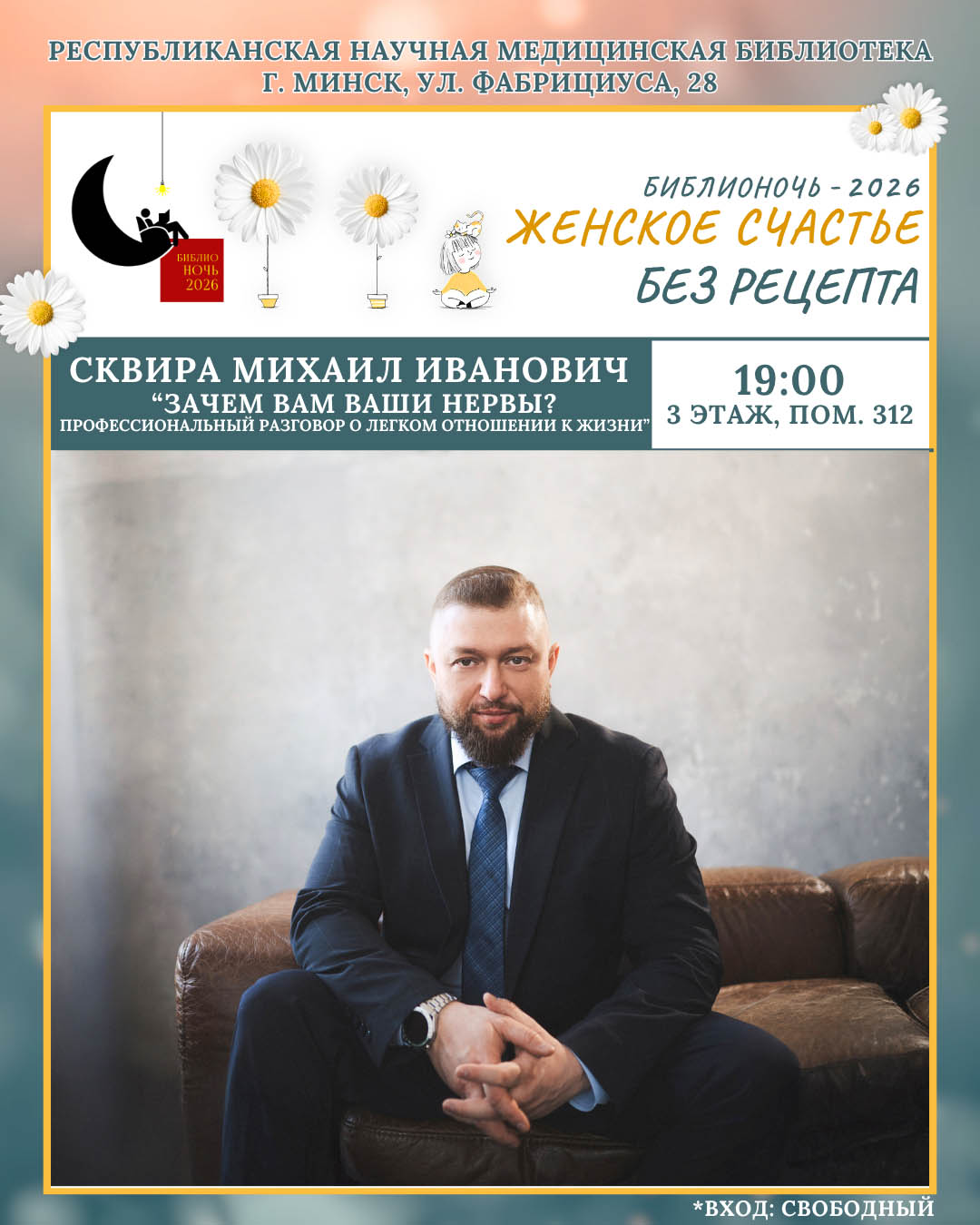 По многочисленным просьбам, гость нашей «Библионочи» – клинический психолог, магистр психологических наук Михаил Иванович Сквира.