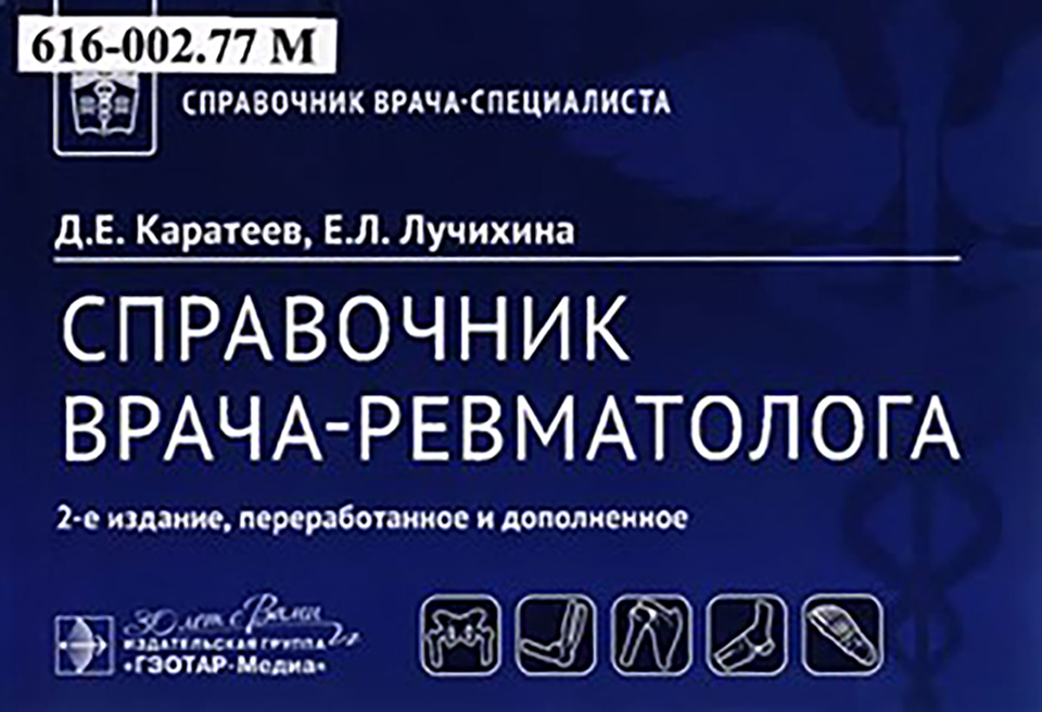 Каратеев, Д. Е. Справочник врача-ревматолога / Д. Е. Каратеев, Е. Л. Лучихина. – 2-е изд., перераб. и доп. – М. : ГЭОТАР-Медиа, 2025. – 373 с.