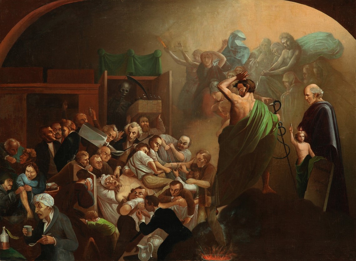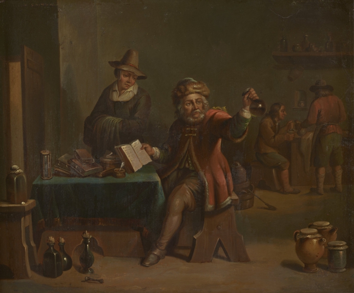 В Средние века уроскопия фактически становится олицетворением медицины, более того, известны картины, на которых сосуд с мочой (матула) представляется визитной карточкой врача. В экспозиции Музея истории медицины Беларуси РНМБ есть две картины, на которых запечатлен процесс уроскопии. На копии картины «Сельский врач» (оригинал создан в XVII в. фламандским художником Давидом Тенирсом Младшим) врач изучает на свет содержимое сосуда – это и есть матула с мочой пациента. А на другой картине неизвестного художника середины XIX в. «Аллегория медицины» среди многочисленных врачевателей можно заметить фигуру медика, рассматривающего сосуд, – это тоже использование метода уроскопии того времени.