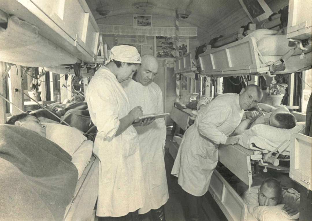 Для эвакуации раненых и больных военнослужащих во время Великой Отечественной войны использовались специально сконструированные военно-санитарные поезда. 24 июня 1941 г. был отдан приказ о формировании 288 военно-санитарных поездов в кратчайшие сроки. Через два дня вступили в действие «Положение о военно-санитарных поездах», подписанное заместителем наркома обороны СССР С. М. Будённым и «Инструкция по погрузке и разгрузке военно-санитарных поездов». В результате, под эти цели были выделены 6 тыс. вагонов, определены штаты железнодорожников в бригадах и обозначены места формирования поездов.