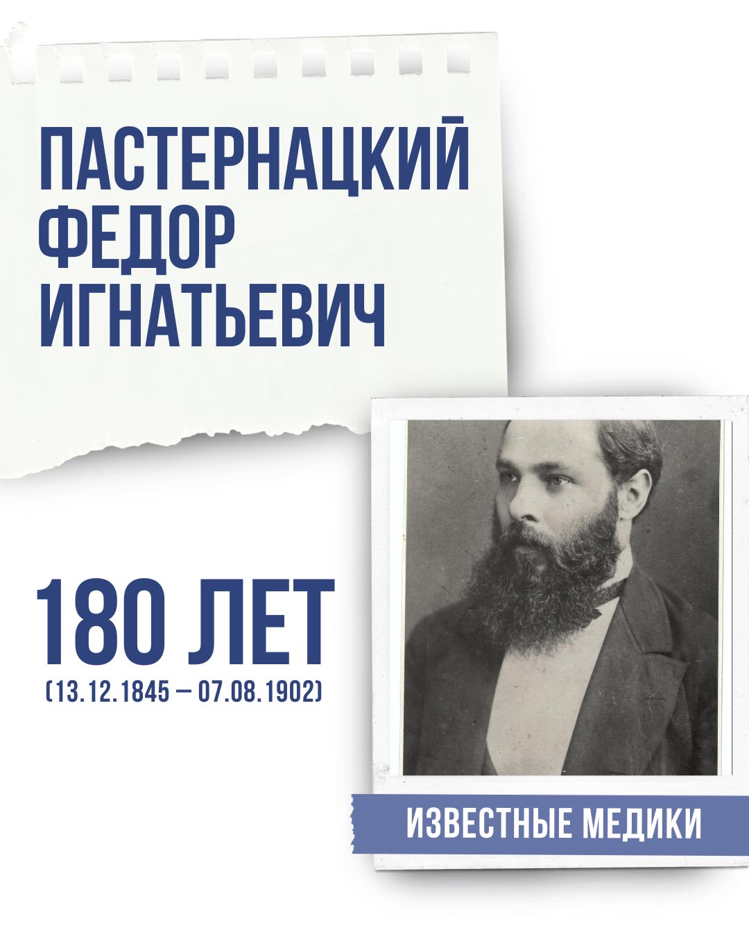 13 декабря 2025 года исполняется 180 лет со дня рождения выдающегося ученого и клинициста Федора Игнатьевича Пастернацкого.