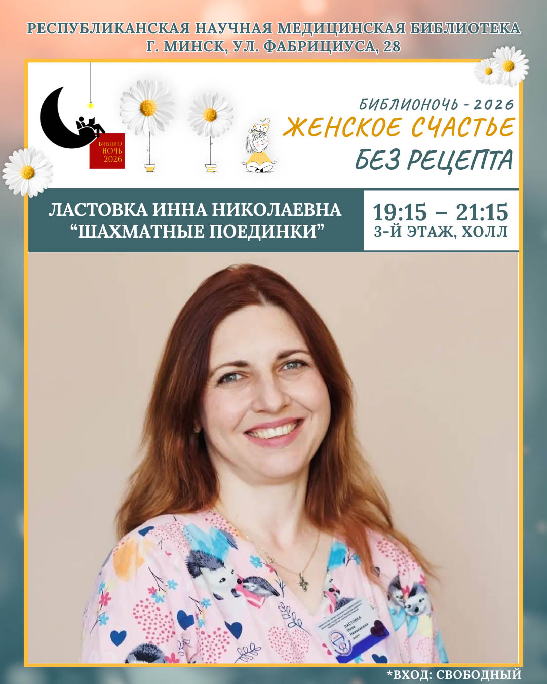 Инна Николаевна — врач-педиатр, инфекционист, доцент кафедры детских инфекционных болезней с курсом повышения квалификации и переподготовки БГМУ. Выдержите ли вы натиск профессионала, который привык ставить точные диагнозы и одерживать победы не только над болезнями, но и на шахматном поле?