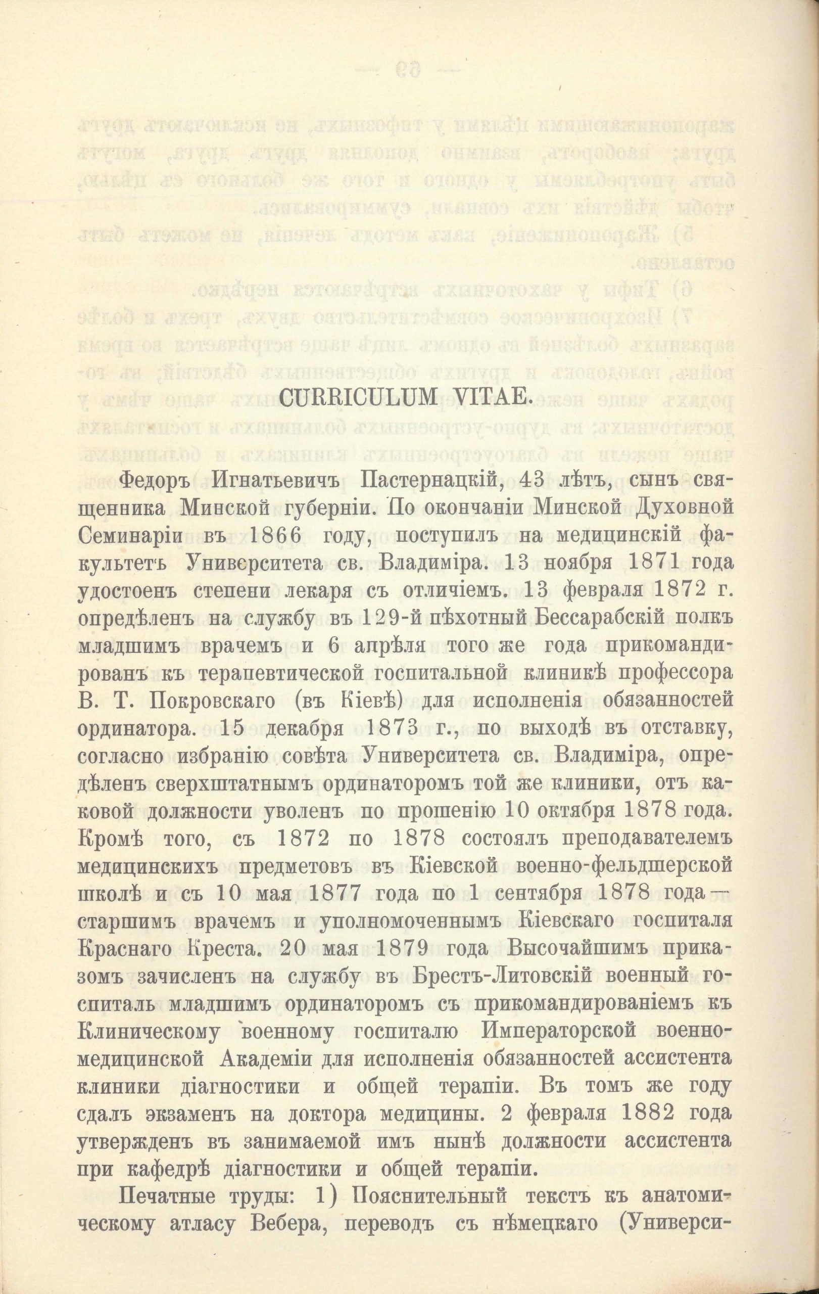 Биографические сведения о Ф. И. Пастернацком из его диссертации на степень доктора медицины. Фонды Республиканской научной медицинской библиотеки.