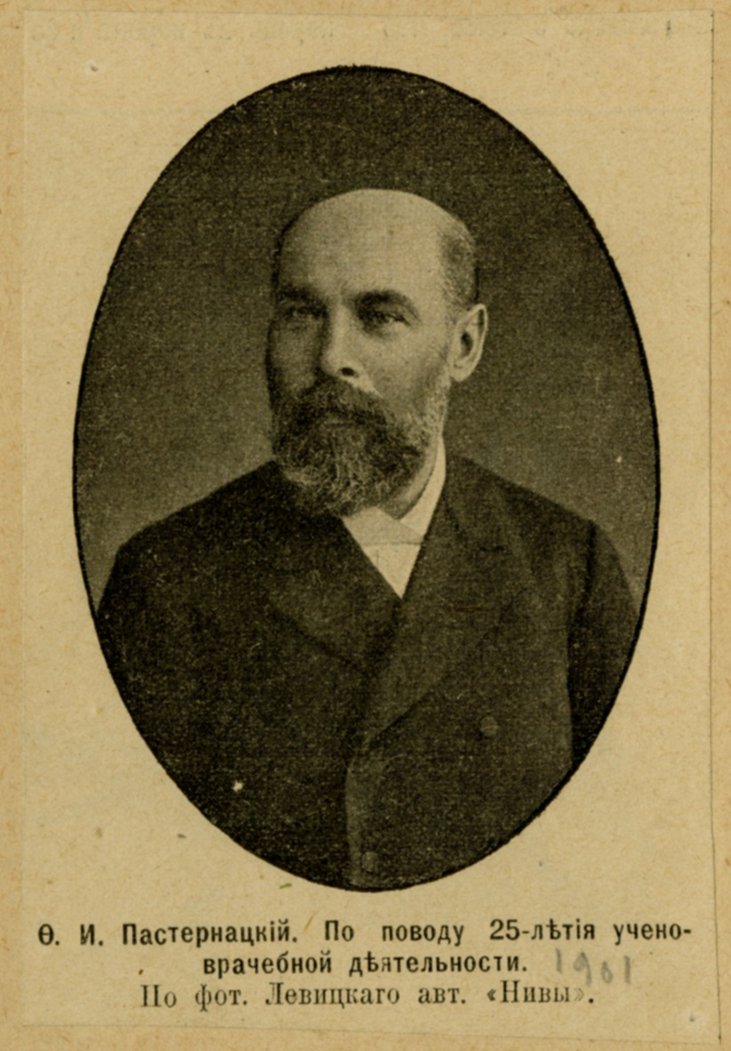 С 1893 г. по инициативе Федора Игнатьевича в клинике регулярно проходили клинические «беседы», где обсуждали новейшие открытия медицины, разбирали результаты собственных исследований и демонстрировали пациентов [1, с. 72]. В этих встречах участвовали студенты, врачи и сотрудники кафедры; со временем беседы выросли в полноценные конференции. Благодаря такту и деликатности Пастернацкого обсуждения проходили в свободной и уважительной атмосфере: любой мог задать неудобный вопрос или высказать сомнение. Его искренность, широта знаний и нестандартное мышление привлекали студентов и молодых врачей, которые с охотой шли в его клинику.