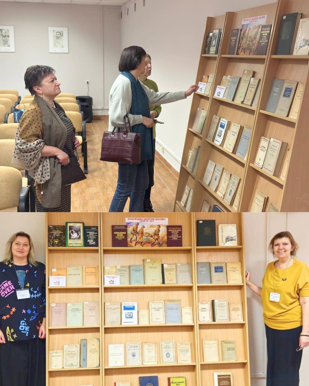 На протяжении всего дня, в перерывах между заседаниями, гости знакомились с обменным фондом нашей библиотеки, изучали книжную выставку «Военная медицина: наша история, наша память», на которой были представлены уникальные издания времен Великой Отечественной войны из фондов РНМБ.
