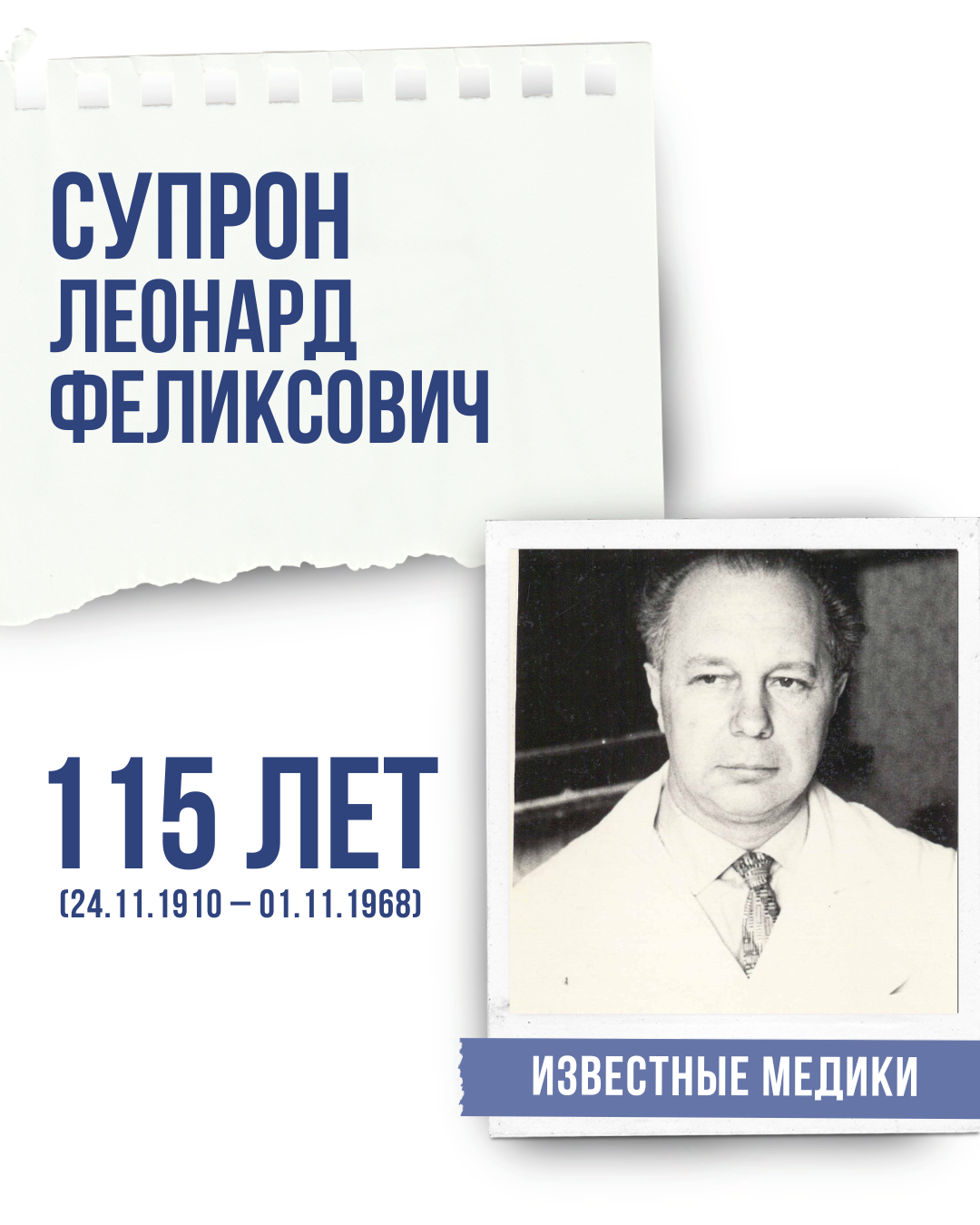 В этом году исполняется 115 лет со дня рождения Леонарда Феликсовича Супрона (1910–1968) – организатора здравоохранения, кандидата медицинских наук, первого директора Гродненского медицинского института.