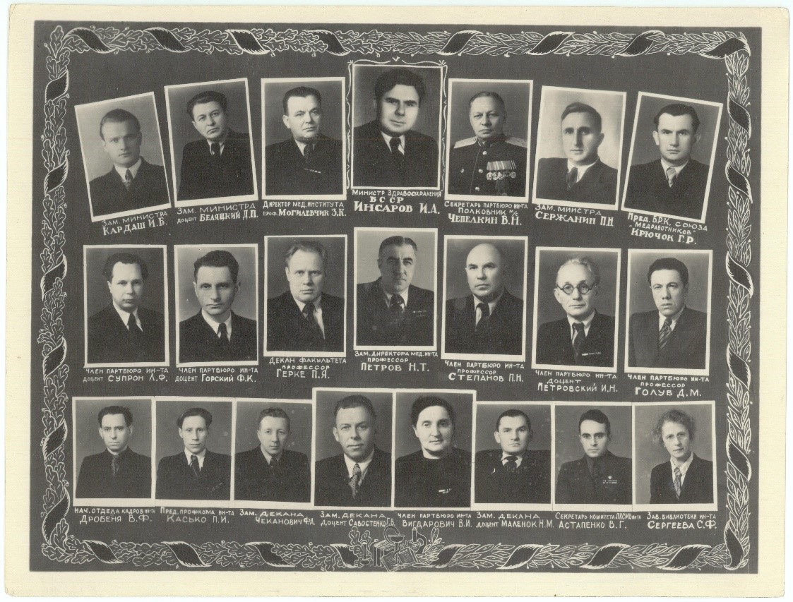 Преподаватели Минского государственного медицинского института. Во 2-м ряду 1-й слева – член партбюро института доцент Л. Ф. Супрон