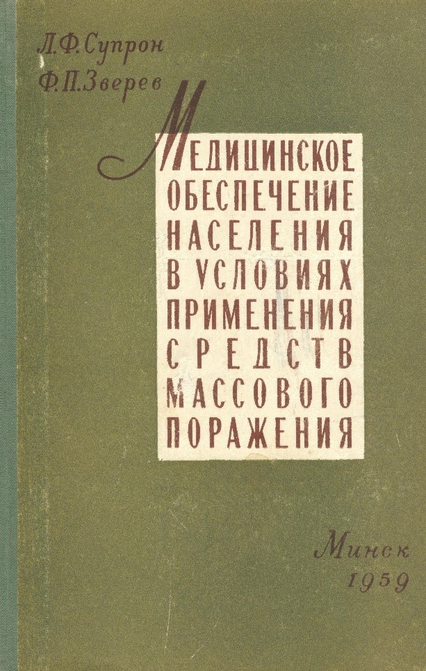 Учебник Л. Ф. Супрона и Ф. П. Зверева «Медицинское обеспечение населения в условиях применения средств массового поражения», изданный в Минске в 1959 г.