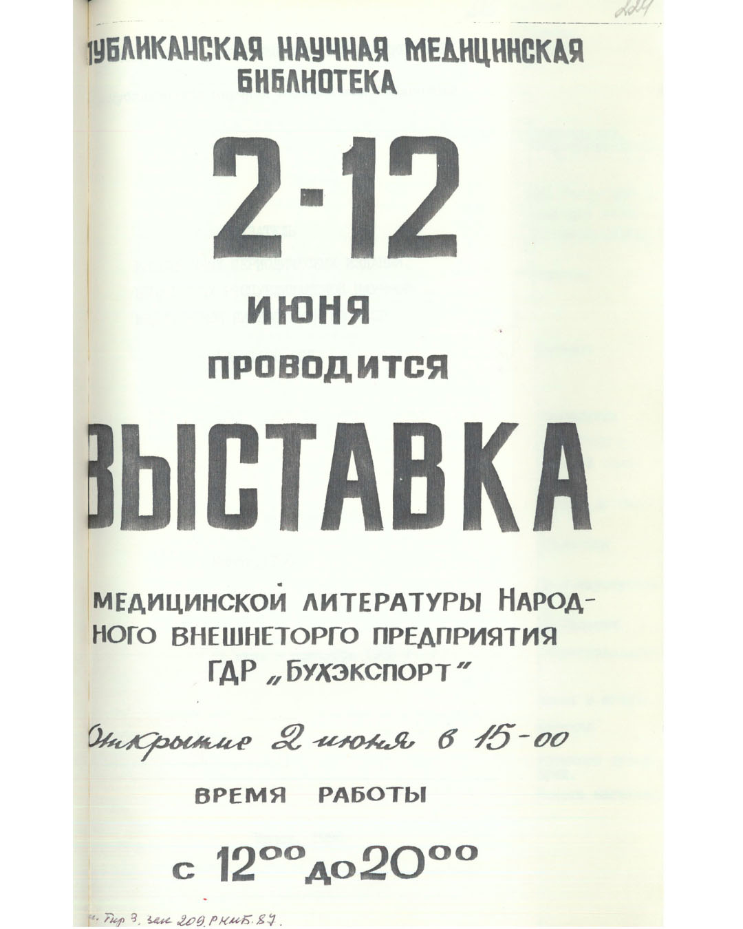 Следующий, 1987 год, начался с капитального ремонта здания. Несмотря на это, читатели по-прежнему получали все основные услуги. Осенью появилась новая структура – отдел информационно-массовой работы. Он взял на себя взаимодействие с медицинскими учреждениями республики. Кроме того, росло число специалистов, нуждавшихся в оперативной информации: в 1987-м 42 доктора наук пользовались приоритетным обслуживанием. Они могли обращаться без очереди, заказывать книги по телефону и получать копии необходимых материалов.