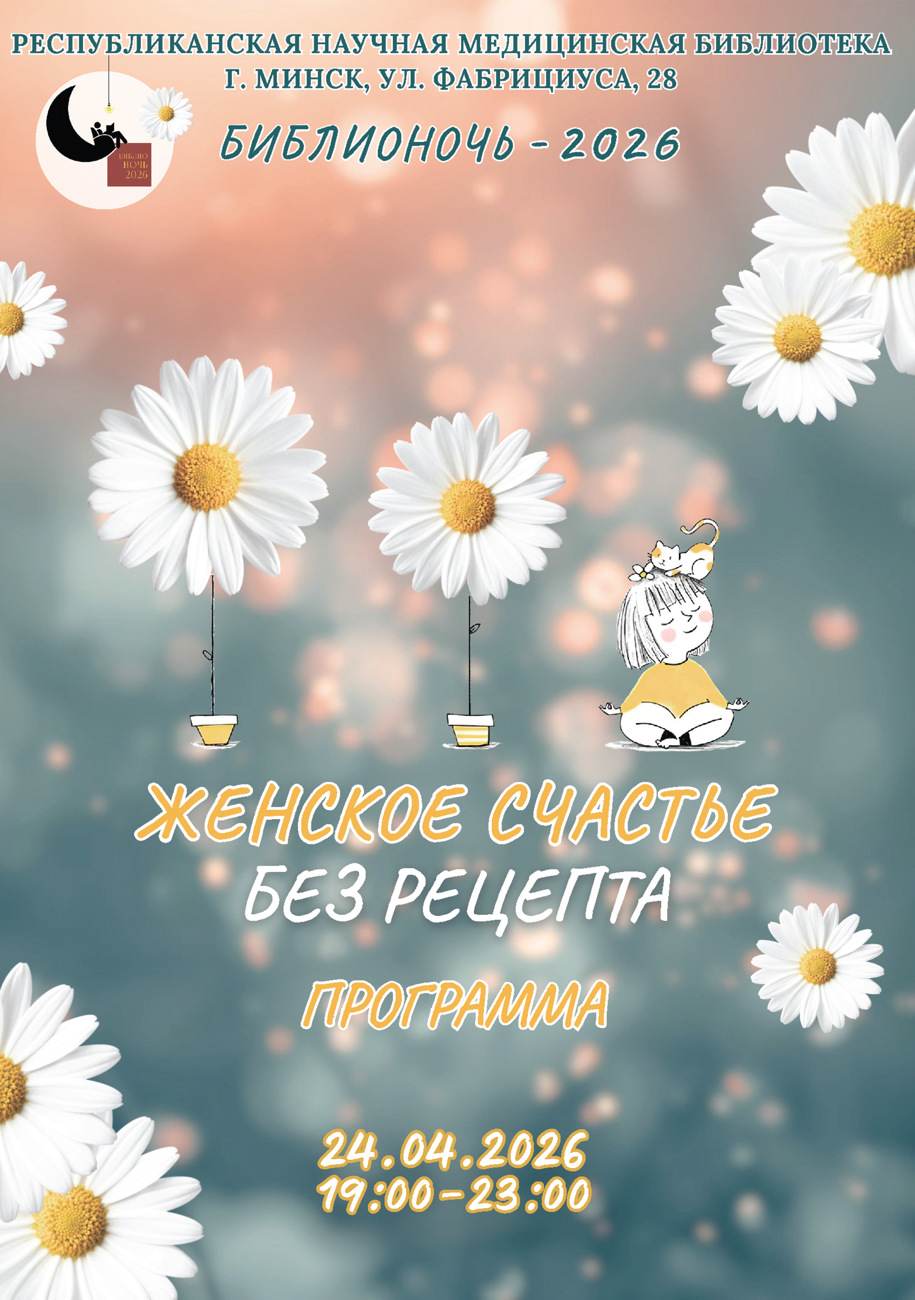 Приглашаем всех 24 апреля посетить «Библионочь – 2026» Республиканской научной медицинской библиотеки. Мероприятие пройдет с 19.00 до 23.00 под девизом «Женское счастье без рецепта».