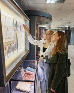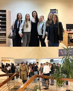 В год 80-летия Великой Победы главным мероприятием вечера стала интерактивная выставочная площадка «Под огнём и скальпелем». Это было особое пространство, где ожила история военной медицины времён Великой Отечественной войны. Ведущие – участники группы военно-исторической реконструкции «Эпоха» при Институте пограничной службы Республики Беларусь. Они продемонстрировали различные образцы униформы и снаряжения врачей и санитаров-носильщиков Красной Армии, рассказали о героической и самоотверженной деятельности медиков в годы Великой Отечественной войны. Каждый экспонат можно было не только тщательно рассмотреть, но и подержать в руках.