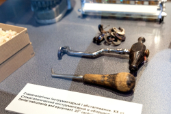 Музей располагает богатой коллекцией медицинского инструментария и оборудования, а также аптечной посуды. Ранее не было возможности широко представить предметы из названных коллекций; в новой экспозиции этот вопрос был решен с помощью специально организованного пространства, в котором сгруппированы по функциональному назначению и представлены наиболее интересные предметы.