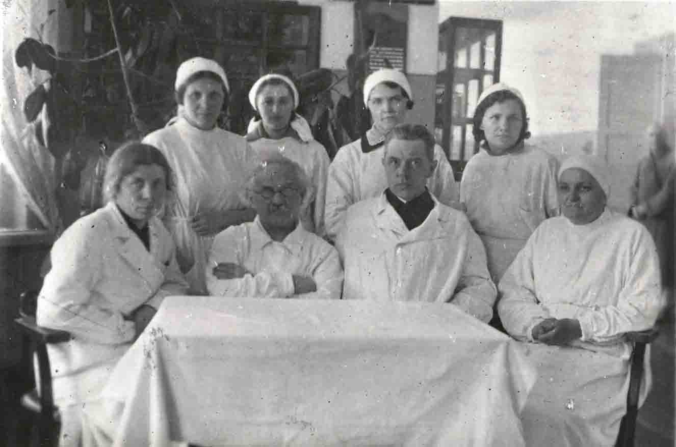 Группа медицинских работников Витебской областной клинической больницы. В 1-м ряду 2-й слева – профессор В. О. Морзон. Витебск, 1938 г.